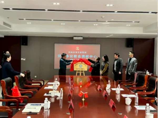 On the 11th, a delegation of officials from relevant departments, including Wei Chunxia, Chief of the Arbitration Section of the Luoyang Municipal Human Resources and Social Security Bureau; Wang Fang, Deputy Director of the Luoyang Municipal Labor Rights Protection Center; Liang Zhanqiang, Minister of the Legal and Social Work Department of the Luoyang Municipal Federation of Trade Unions; and Li Kezhong, Minister of the Economic Liaison Department of the Luoyang Municipal Federation of Industry and Commerce, visited Jintao Group for research and guidance, and jointly unveiled the "Jintao Group Labor Dispute Mediation Committee." Hu Bowen, Deputy General Manager of the Group, and his management team accompanied and received them.